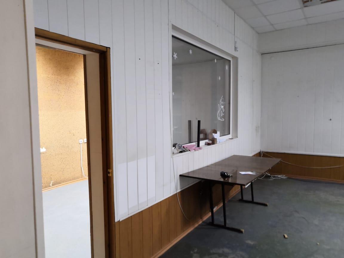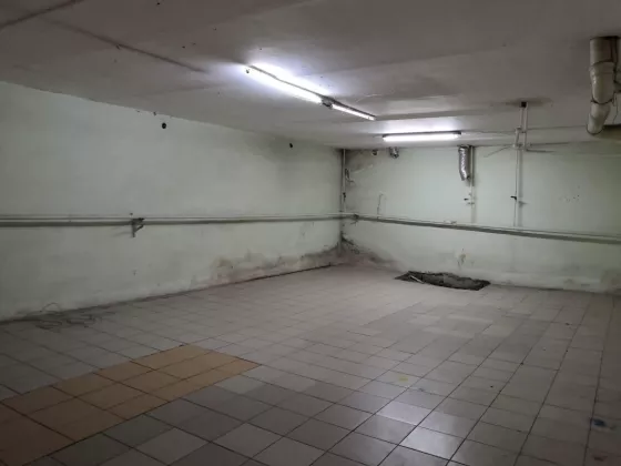 Потолок армстронг (высота потолка 3,5 - 4м), пол плитка, стены пластиковые панели, парковка.