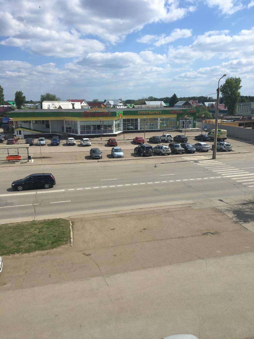 Развитая инфраструктура. Удобные подъездные пути, всегда имеются места для парковки автомобилей. Рядом расположены магазины Сабантуй, Полушка, Пятерочка, аптеки. Рядом с ТЦ расположен детский парк развлечений.