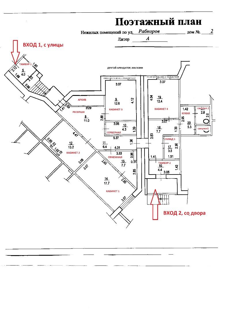 ХАРАКТЕРИСТИКИ: Площадь 198,5 м2, Высота потолков 2,7 м. Помещение располагается на первом этаже 12 этажного жилого дома, 2 отдельных удобных входа. Планировка кабинетно-коридорная, 3-санузла, 4 кабинета, несколько подсобных помещений, приемная, серверная, кухня.