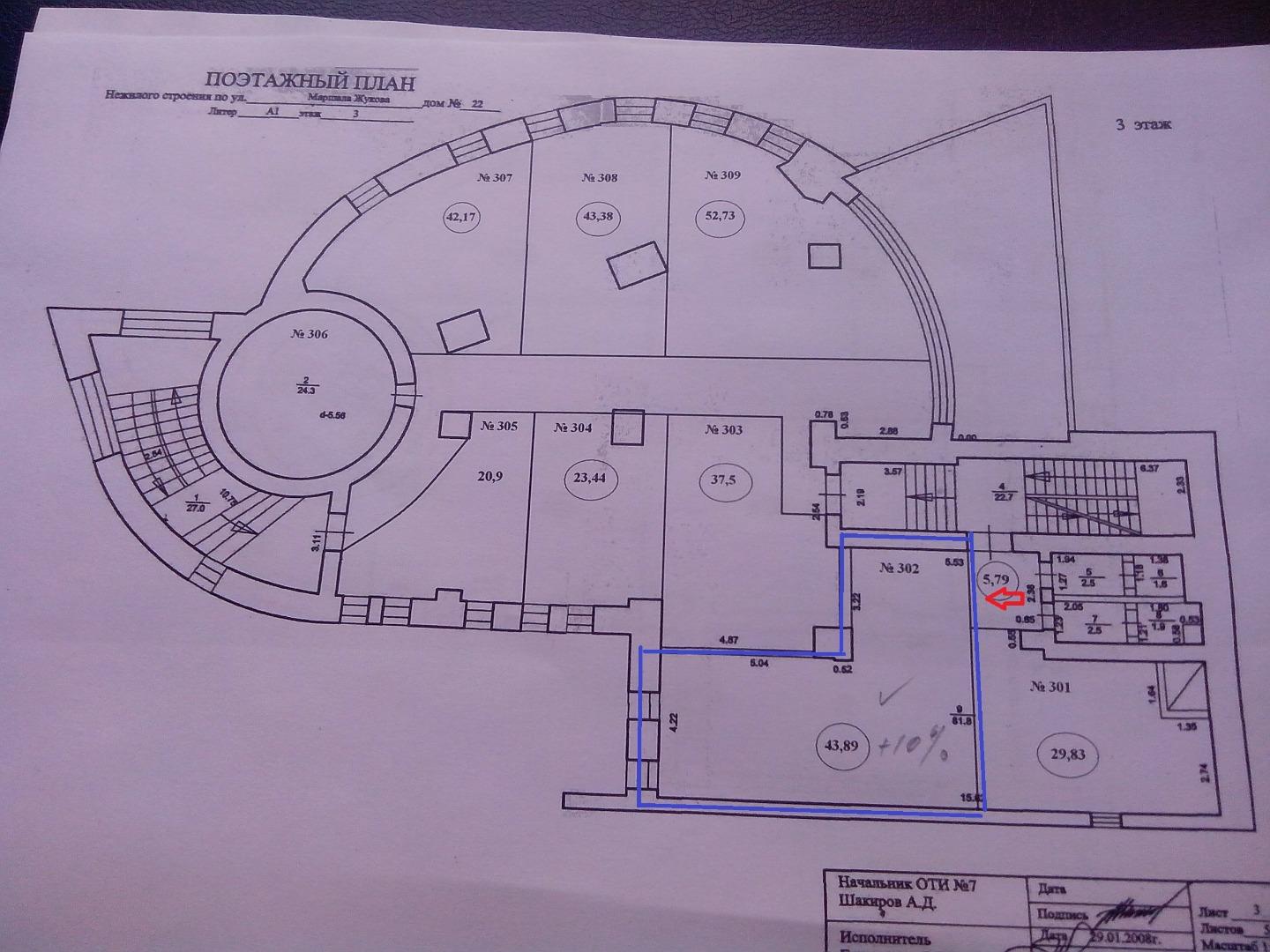 Аренда офисных помещений по адресу г. Уфа ул. Маршала Жукова, д. 22, площадью 43,89 м2